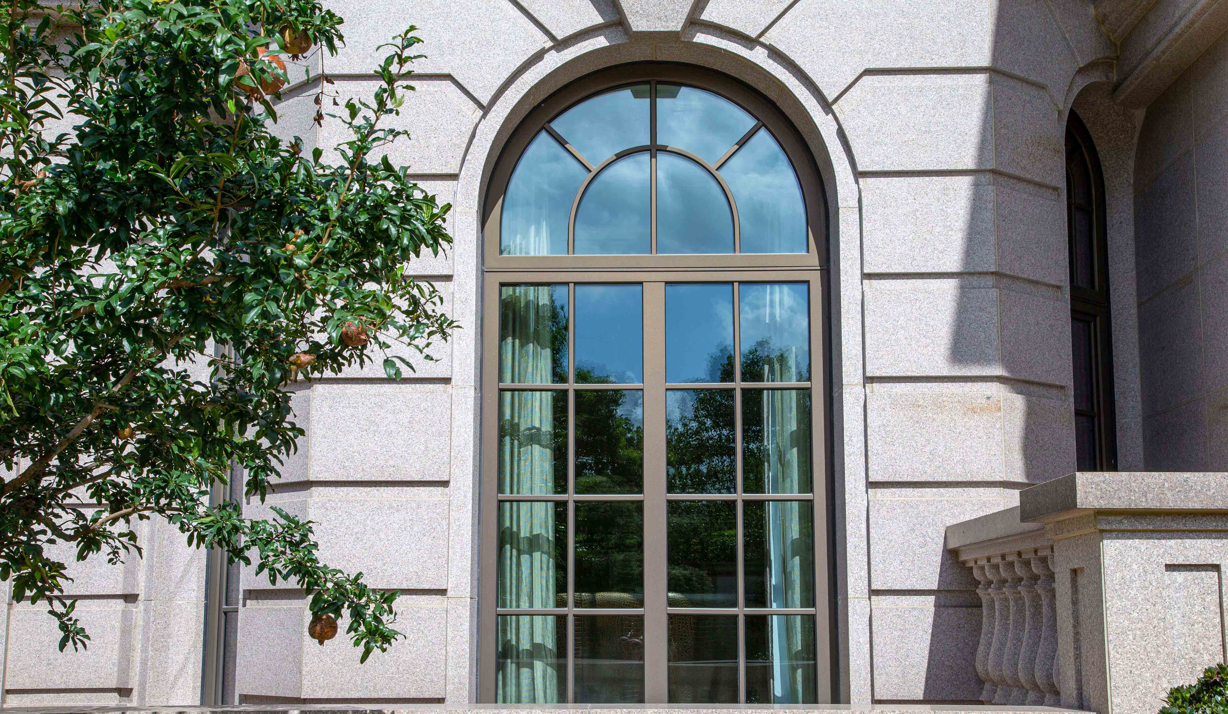 Die Holz-Kupferfenster und -türen kommen dem gelassenen und klassischen Stil des ganzen Geb?udes zugute, w?hrend der Einsatz von elektronisch angetriebenen Hochfenstern und Markisen das Wohnviertel zum ?intelligenten Viertel“ macht. Besonders klassisch ist das Design von Balkontüren sowie Schiebetüren, die den technischen Vorsprung von HANS-ROCK beim Herstellen von riesigen Fenstern und Türen demonstrieren. Für alle Fenster und Türen werden robuste, hochfeste Beschl?ge verwendet, was die Stabilit?t des Fenster- und Türensystem gew?hrleistet.