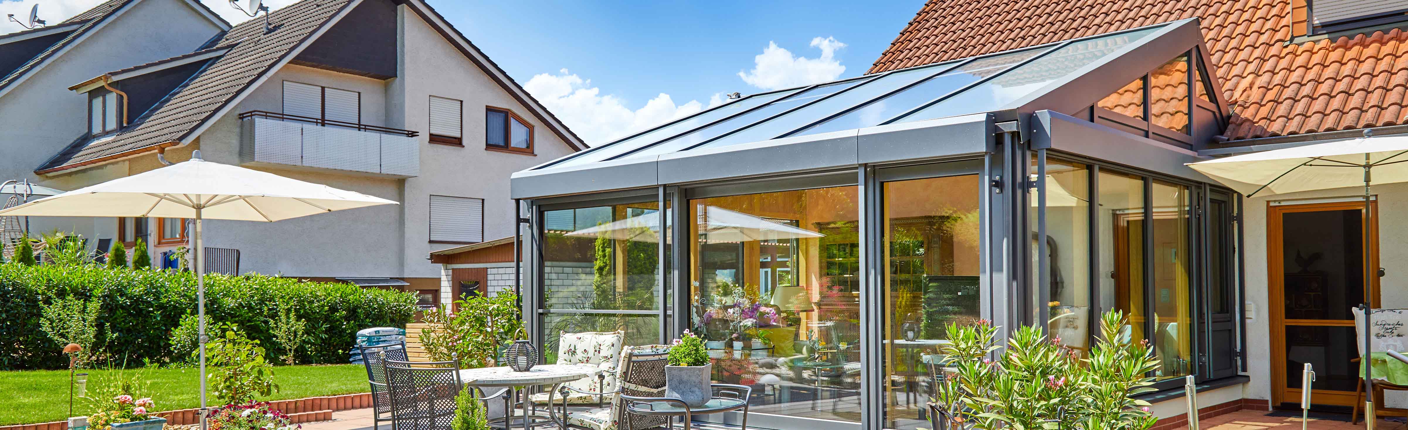 Statt traditioneller geraden Linien werden hier teilweise perfektionierte Kreisbogenelemente eingesetzt, die zusammen mit Design der Lichtkombination den ganzen Raum des Wintergartens sowohl elegant und würdevoll, als auch angenehm und gemütlich wirken lassen. Erw?hnenswert ist, dass die eingesetzten Kreisb?gen nicht aus unterbrochenen Linien bestehen, sondern echte Kreisb?gen sind, was die exzellente Handwerkskunst von HANS-ROCK zeigt.
